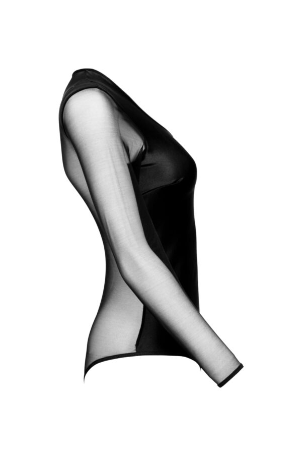 Come un brivido lungo la pelle. Una scarica elettrica lungo la dorsale della femminilità. Airen è un body ultrafemminile che prende spunto dai body danza per ridefinire l’orizzonte della sensualità. Aderente e brillante nella parte anteriore grazie all’utilizzo della seta, cede alla trasparenza del tulle lungo la schiena e sulle maniche. Slip in tulle con chiusura a tre bottoni e spalline regolabili, Airen sintetizza lo yin e lo yang dell’essere donna, in gioco infinito di vedo e non vedo, dare e avere, vestirsi e spogliarsi. Perfetto come sottogiacca, adatto per essere indossato sotto un morbido cardigan.