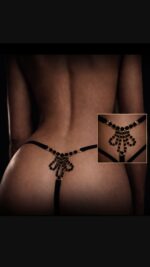 Il perizoma gioiello Tiara di Foly Lingerie è un accessorio intimo tra i più scintillanti e divertenti. Perizoma regolabile grazie a stringhe morbide e sottili, Tiara presenta nella parte anteriore un tassello triangolare morbido e leggero. Nella parte posteriore le stringhe sono trattenute da un motivo bijou composta da una maglia metallica nikel free su cui spiccano strass verdi e una corono bianca capovolta. Una tiara della seduzione per giocare con la fantasia.