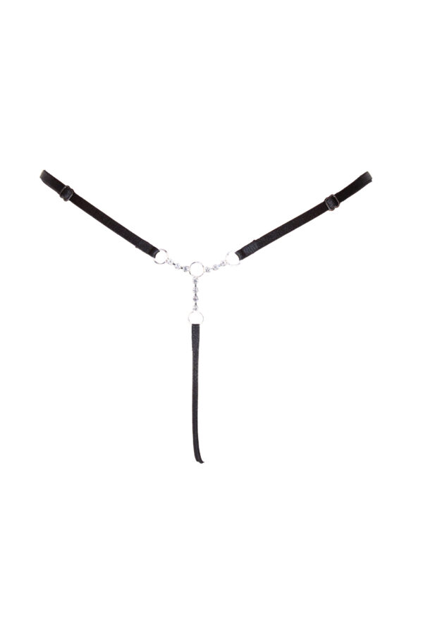 Perizoma in Vinile Nero con anelli argento e gioiello Planet in NIKEL FREE anallergico.