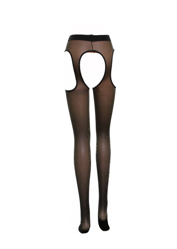 Ashley è uno strip panty trasparente in lurex oro: un capo ideale per le serate di festa. Studiato come una calza di nylon, ma con un pizzico di erotismo in più, le calze da donna Ashley possono essere considerate collant effetto reggicalze, sexy al pari delle classiche calze autoreggenti.
