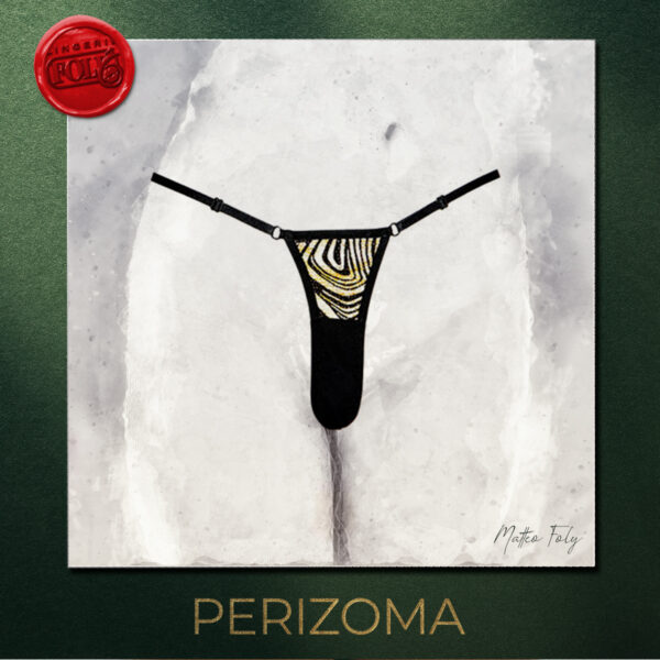 Perizoma in tessuto Lurex oro elasticizzato, un tocco fantasioso per una serata frizzante.